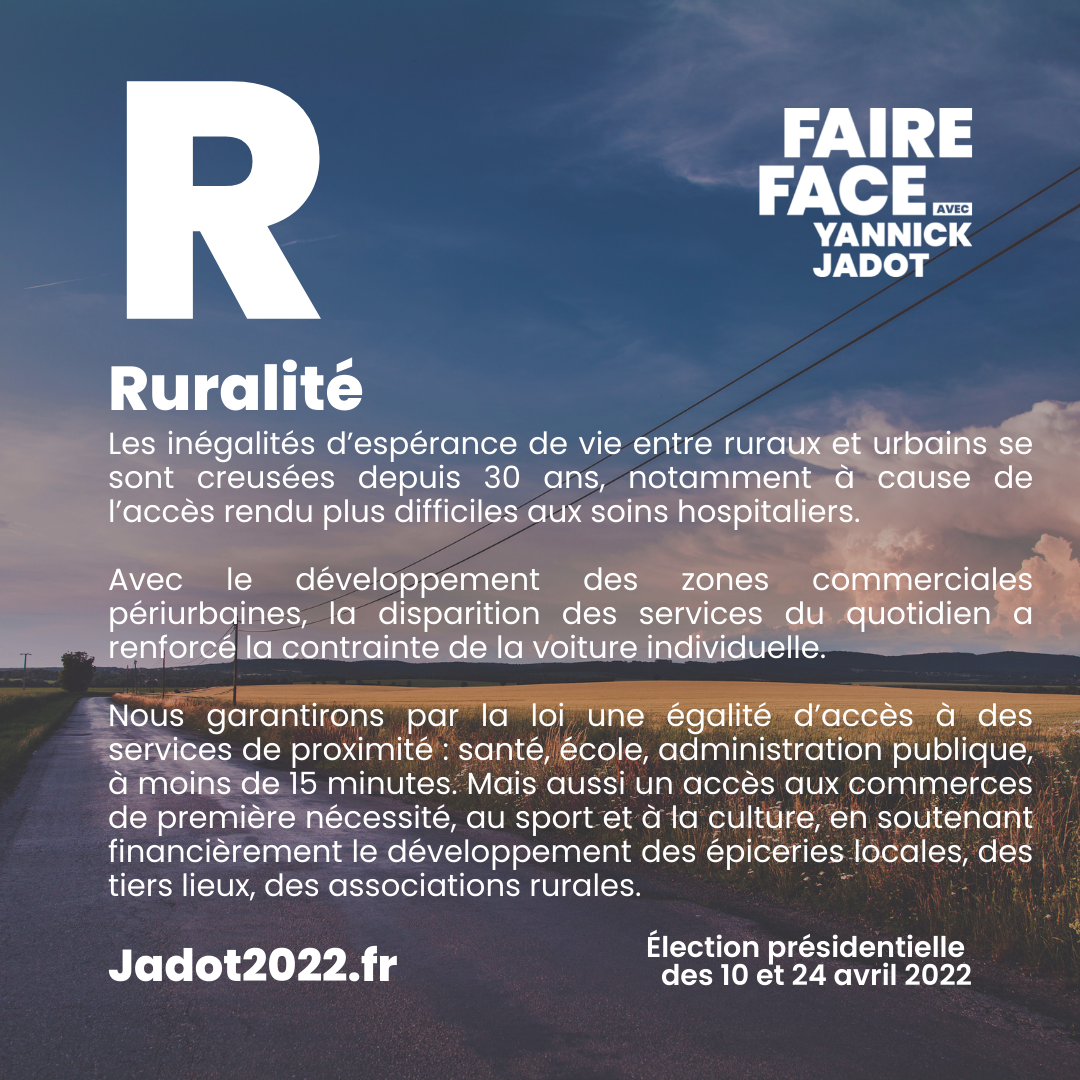 Retrouvez ici l'ensemble des mesures et arguments de l'abécédaire « Un jour, une lettre pour convaincre »... qu'il faut voter Yannick Jadot les 10 et 24 avril prochains. Cliquez sur le visuel qui vous intéresse pour le voir en plus grand ou le télécharger. Cliquez sur la lettre du répertoire qui vous intéresse pour télécharger la totalité des visuels de la dite lettre.