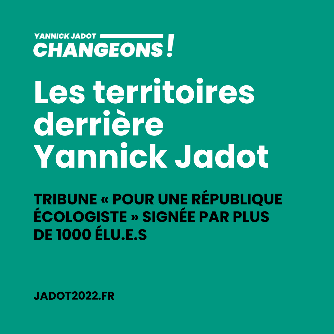 Yannick Jadot, candidat de tou-tes les écologistes, sera le Président d’une République libérée des chaînes des lobbies. Le Président de la transformation écologique de l’économie, de la production soutenable des richesses et de leur partage juste. Le Président qui redonne du sens au travail, des moyens aux services publics, de l’unité et de la dignité à la France. Au XXIe siècle, la politique nationale ne peut se décider en solitaire dans un bureau parisien. Elle doit, au contraire, accompagner chaque échelon et chaque territoire pour que la coopération, la solidarité et le respect de la planète guident le développement de notre pays.